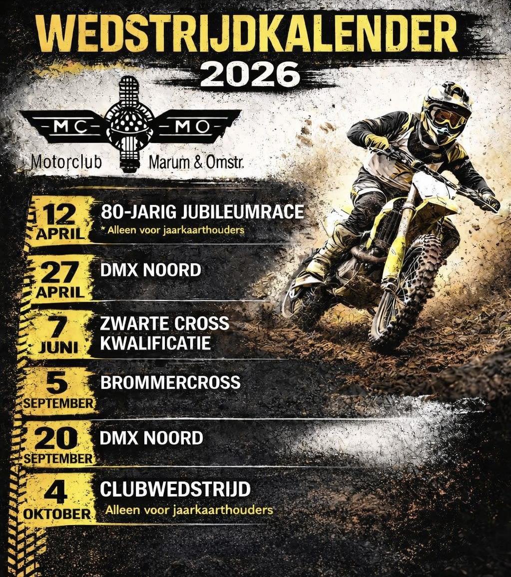 Het wedstrijd programma van Motorclub Marum & Omstreken voor seizoen 2026.